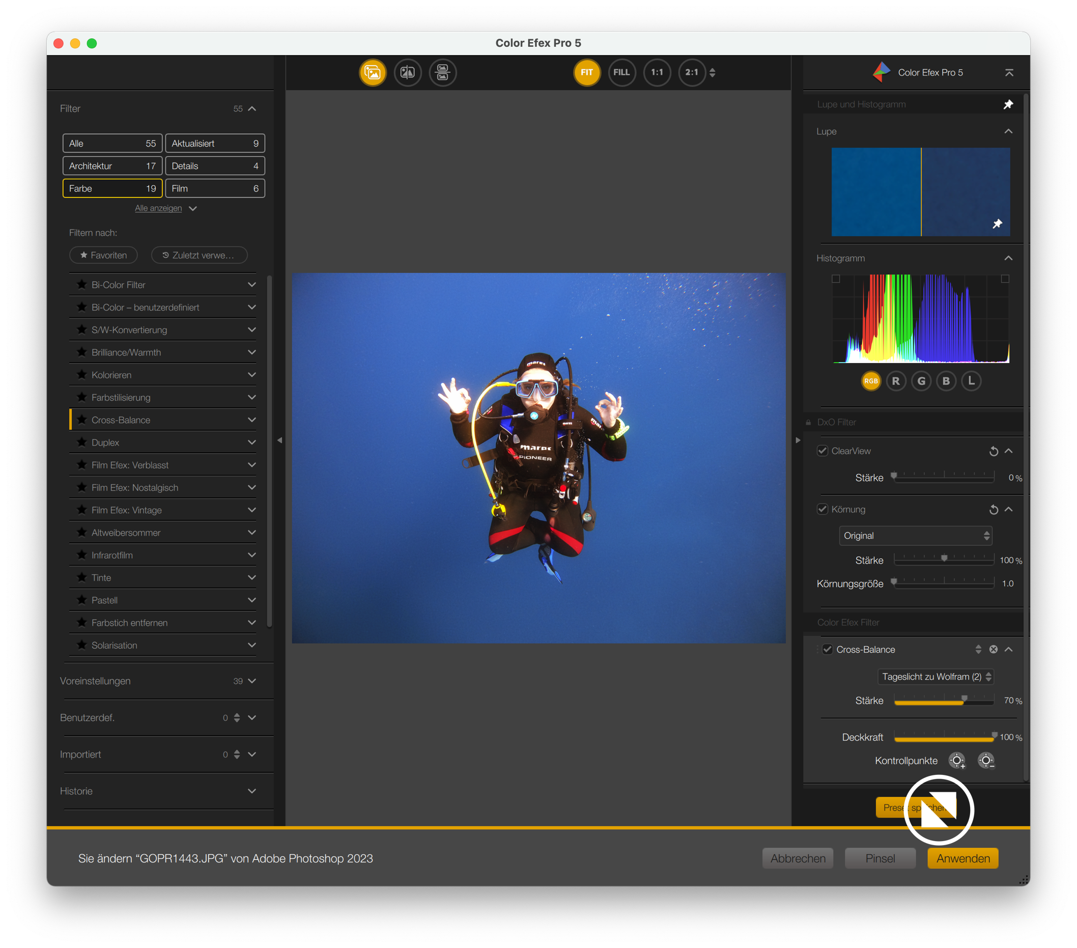 Color Effex 5 - ist das von mir am häufigsten eingesetzte Tool. So lassen sich mühelos Fotos aufpeppen.