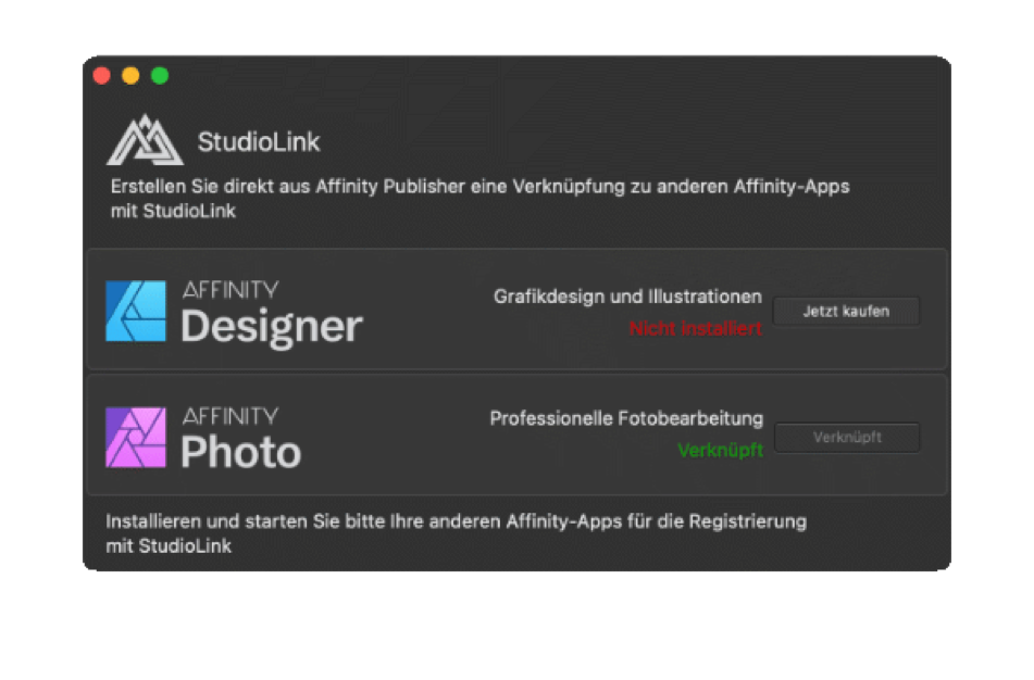 Installiert mit Adobe Lightroom, Adobe Photoshop und Affinity Photo